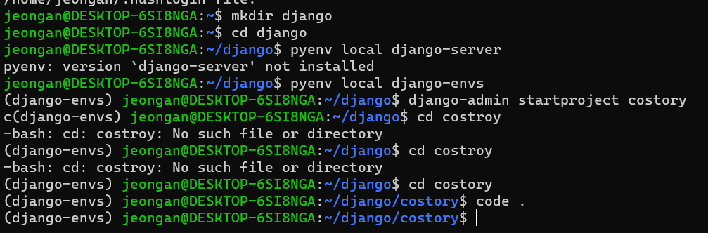 $ django-admin startproject 프로젝트이름