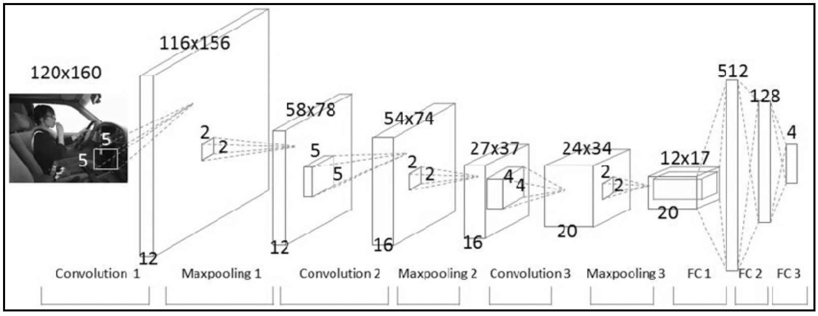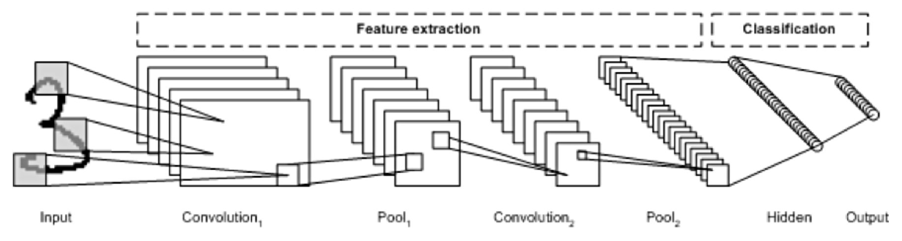 전형적인 CNN 구성입니다. CNN은 Convolution Layer와 Max Pooling 레이어를 반복적으로 stack을 쌓는 특징 추출(Feature Extraction) 부분과 Fully Connected Layer를 구성하고 마지막 출력층에 Softmax를 적용한 분류 부분으로 나뉩니다.