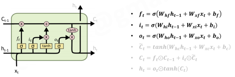 - 3개의 Gates (sigmoid: 0~1의 값을 가짐) - 1에 가까울수록 많이 사용