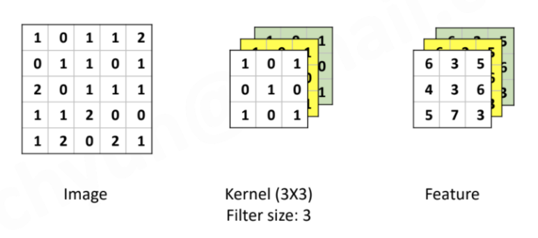- 이때의 filter는 학습된 weight 값으로 보통 크기(ex. 3 X 3)만 지정함