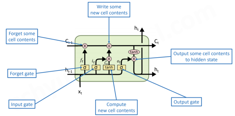 Cell state : 과거 Cell State와 현재 시점의 Cell content의 합