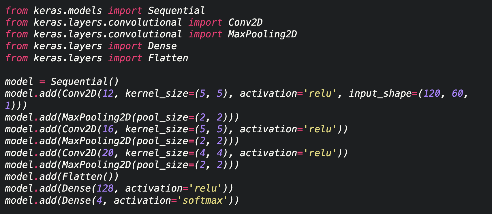 코드 1. CNN 모델 예제 코드 (Keras)