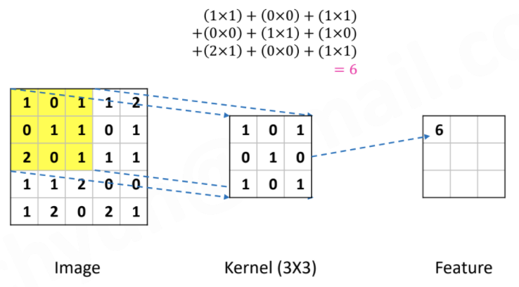 - 아래와 같이 위치를 옮겨가며, element wise multiplication 수행하여 특징을 추출함